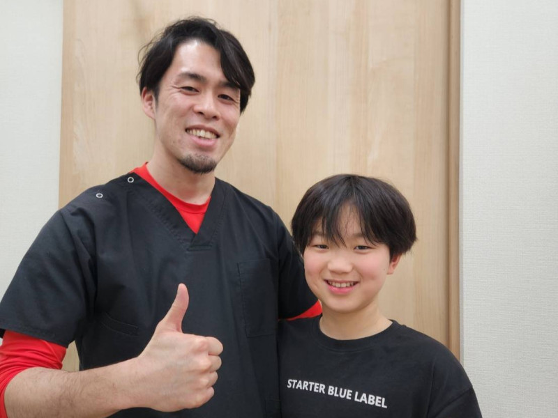 どのようなお悩みで来院されましたか? オスグッド 当院を選んだ理由・経緯をお聞かせください。 父がインターネットで調べて来ました。 施術を受けてみていかがでしたか? 他の病院では部活を休めとしか言われなかったが、この病院ではオスグッドとランナーズニー2つの対処法を教えてもらい、来てから3・4回で痛みがなくなり、部活でも今まで以上のパフォーマンスができるようになりました。 (父)初期の痛みへの対処以降は、ケガをしない体づくりをレクチャーして頂き、充実した部活動が出来るようになりました。教えて頂いたエクササイズを息子と一緒に取り組んでいます。来て良かったです。いろいろとありがとうございました。 (長島瑳輝様 13歳 中学生) ※効果には個人差があります |