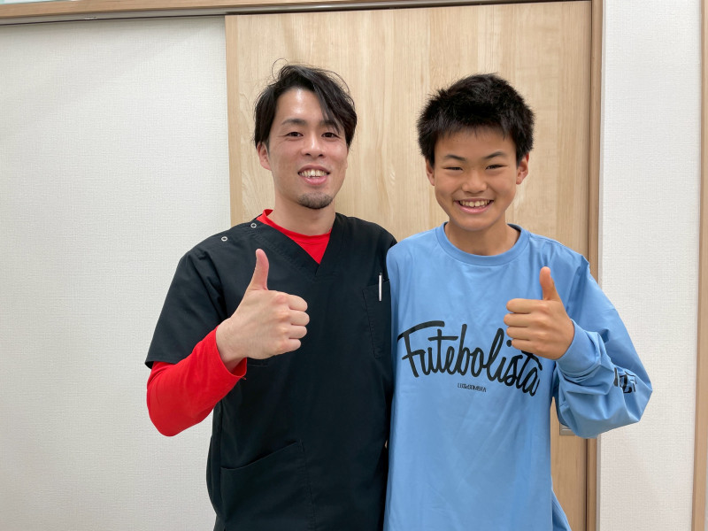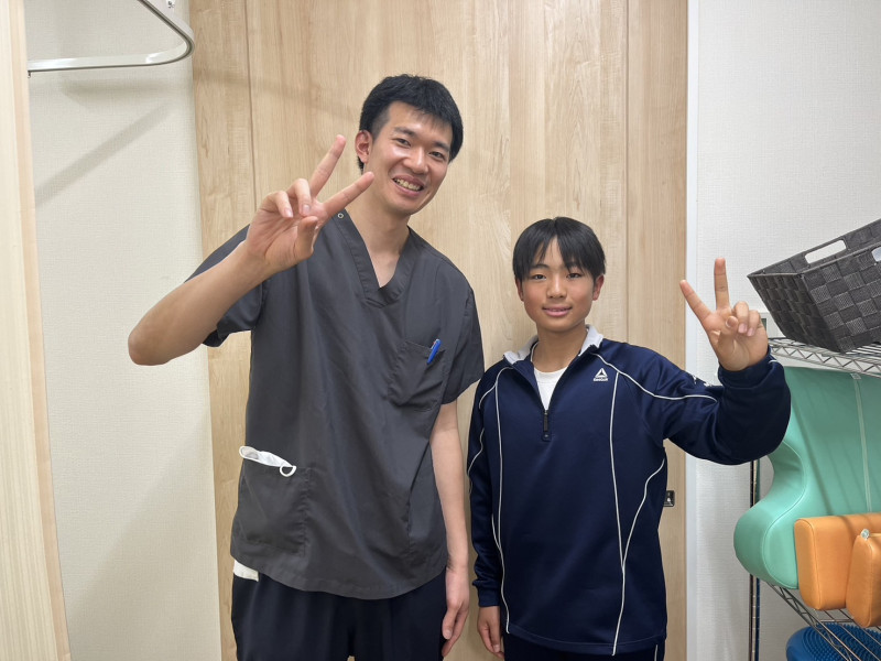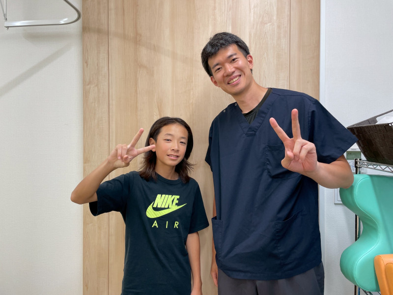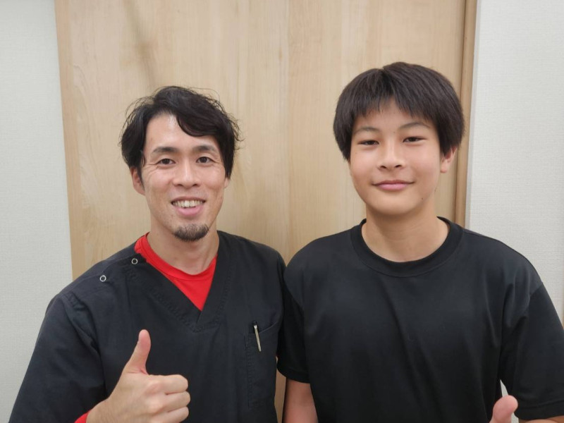 どのようなお悩みで来院されましたか? オスグッド 当院を選んだ理由・経緯をお聞かせください。 父がインターネットで調べて来ました。 施術を受けてみていかがでしたか? 他の病院では部活を休めとしか言われなかったが、この病院ではオスグッドとランナーズニー2つの対処法を教えてもらい、来てから3・4回で痛みがなくなり、部活でも今まで以上のパフォーマンスができるようになりました。 (父)初期の痛みへの対処以降は、ケガをしない体づくりをレクチャーして頂き、充実した部活動が出来るようになりました。教えて頂いたエクササイズを息子と一緒に取り組んでいます。来て良かったです。いろいろとありがとうございました。 (長島瑳輝様 13歳 中学生) ※効果には個人差があります |